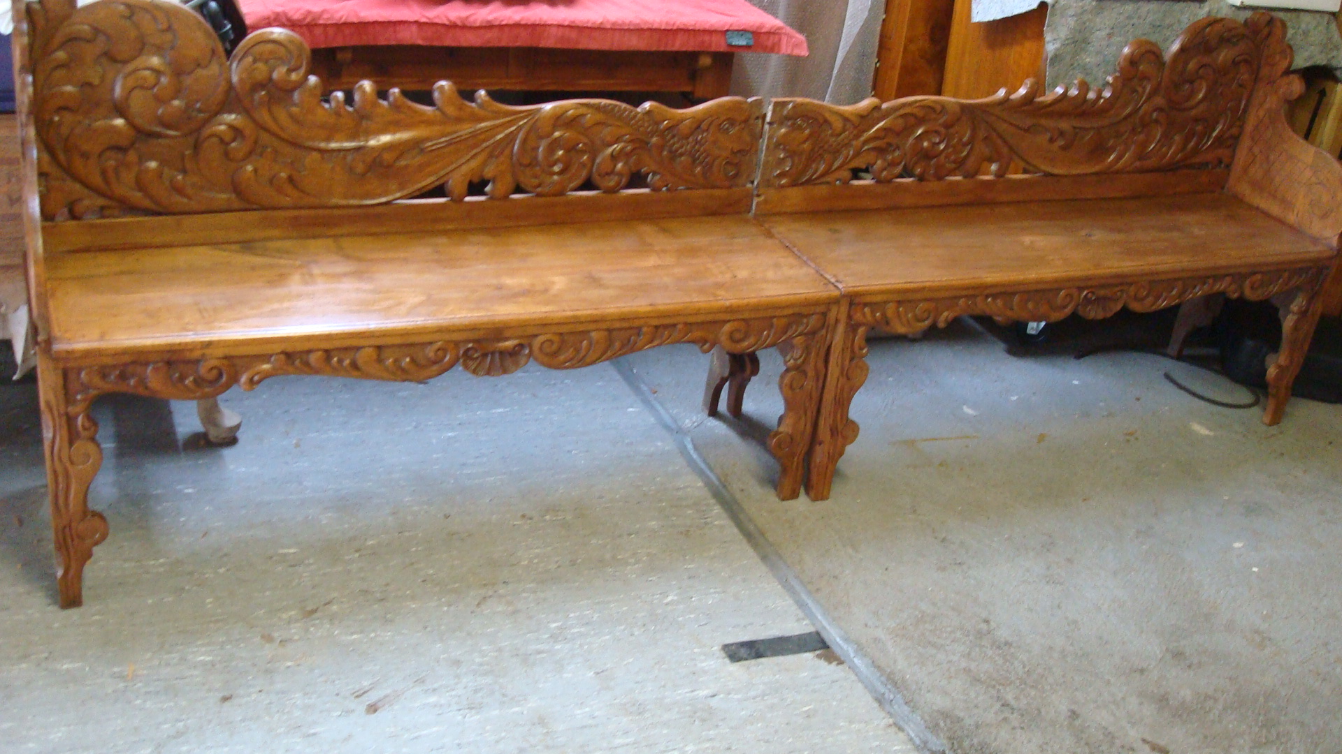 Bank um 1760 mit Schnitzereien-Nussbaum sehr selten